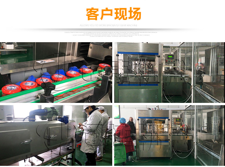 該生產(chǎn)線適合中小口徑三旋、四旋玻璃瓶調(diào)味醬的分裝,適合醬料、含顆粒黏稠物料的灌裝,物料接觸部分均采用316不銹鋼