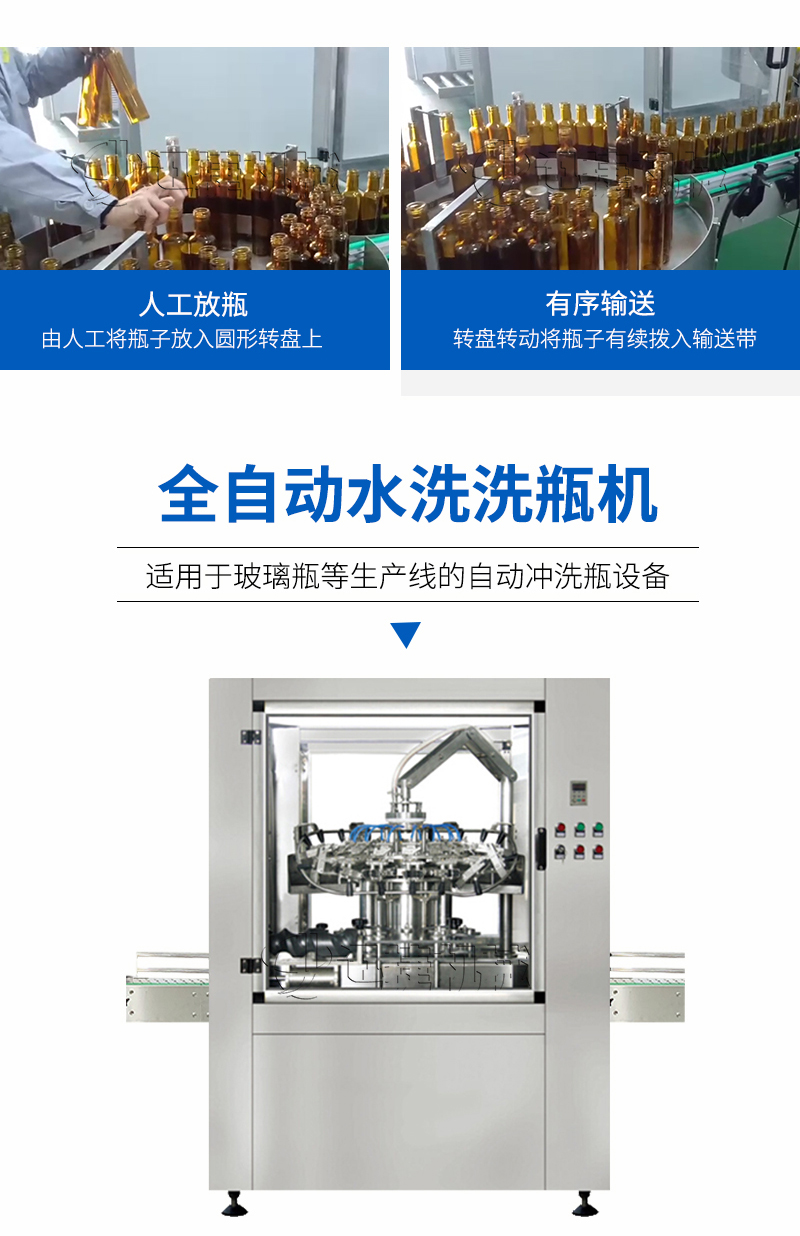 全自動洗瓶機是一種適用于玻璃瓶等生產線的自動沖洗瓶設備。該機設計合理,結構嚴謹,封閉式生產確保生產過程中不受污染。在消化吸收意大利先進技術的基礎上,精心研制而成。