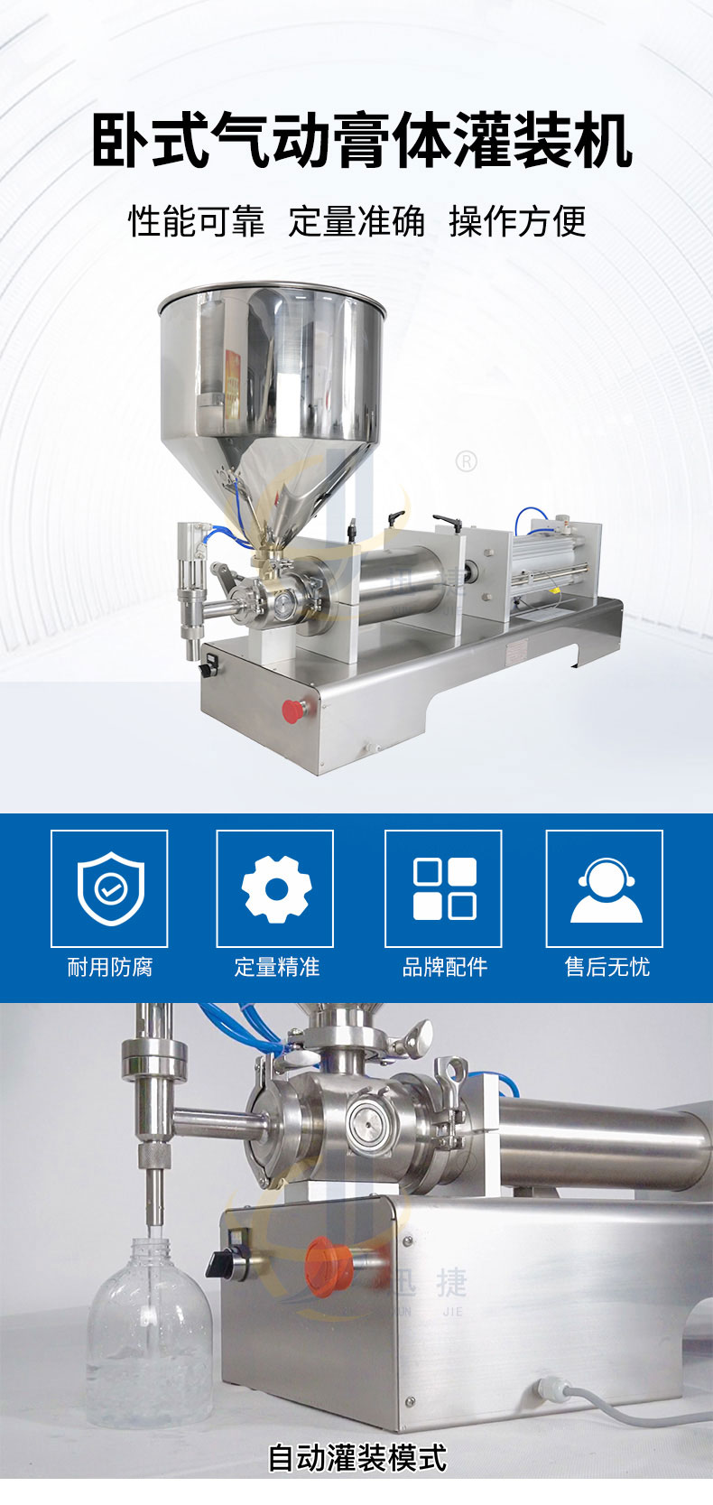 該機為半自動膏體灌裝機,是日化行業(yè)、醫(yī)藥行業(yè)、食品行業(yè)、油墨行業(yè)和涂料行業(yè)的理想灌裝充填設(shè)備,灌裝悶頭采用防滴漏。