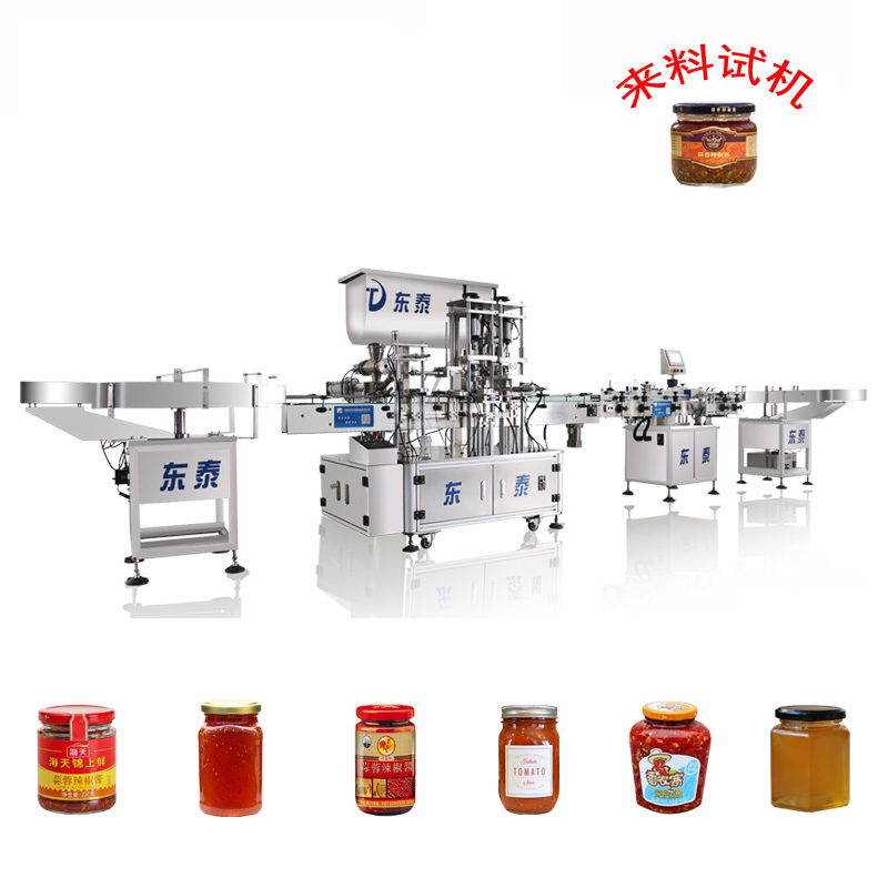 3、該灌裝機(jī)主要針對食品行業(yè)的醬類分裝設(shè)計生產(chǎn),特別適用于調(diào)味品中帶顆粒并且濃度較大的辣椒醬、豆瓣醬、花生醬、芝麻醬、果醬、牛油火鍋底料、紅油火鍋底料等物質(zhì)的粘稠醬類的灌裝。